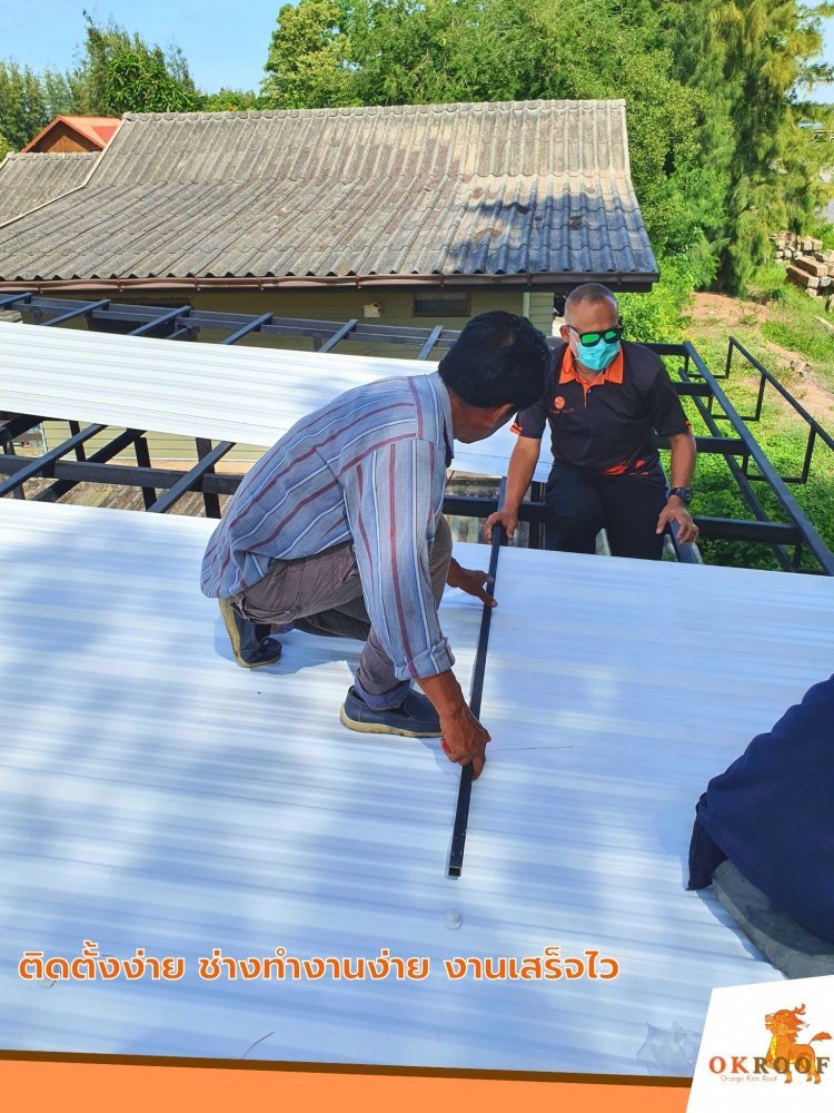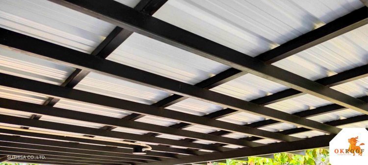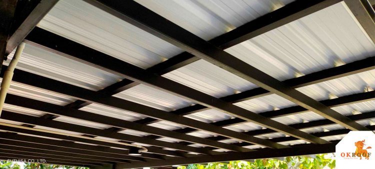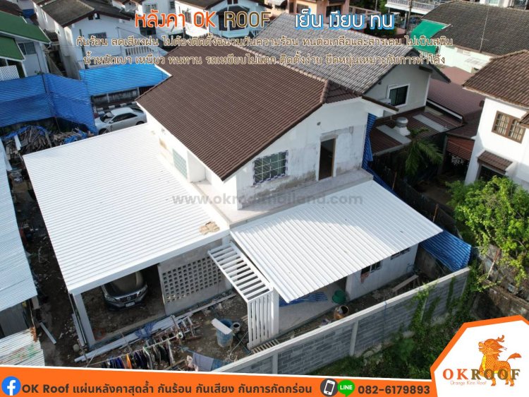 ภาพตัวอย่าง เมื่อนำแผ่นหลังคา OK ROOF ไปติดตั้ง ได้ทั้งความสวยงาม และคุณสมบัติสุดล้ำอีกมากมาย