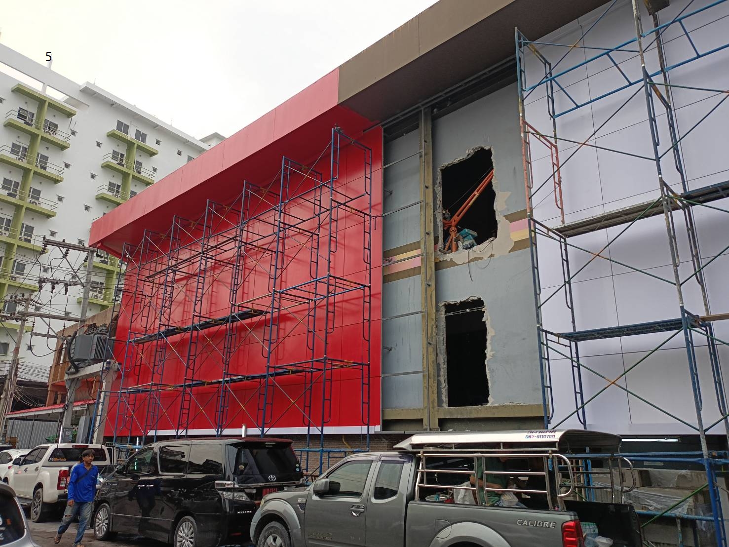 ฟาซาดทำสีแดงเข้มมีช่องระบายอากาศด้านหลังไม่พบการบิดตัว