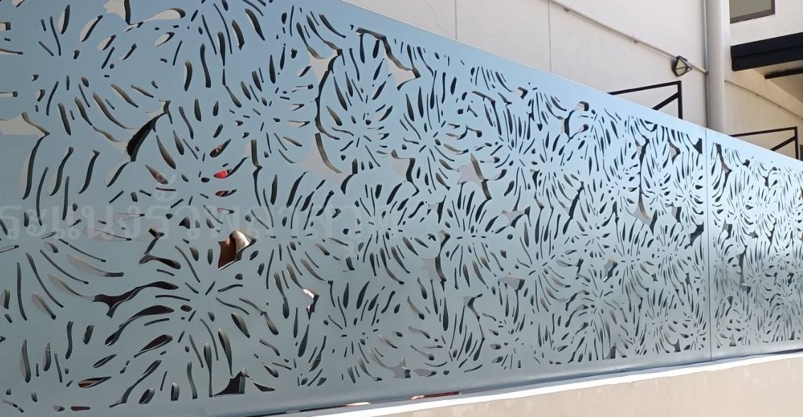 ผนังพลาสวูดทำสีเทาเข้มโดนแดดโดยตรงพบการบิดตัวของพลาสวูด
