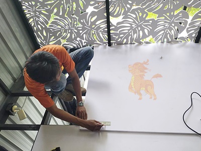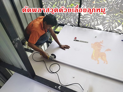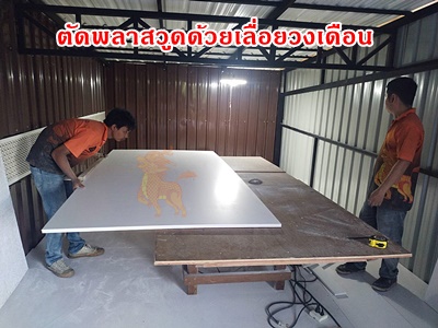 ตัดแผ่นพลาสวูดโดยใช้ลูกหมู