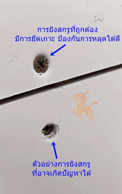 ยิงตะปูให้ครบทุกมุม ระยะห่างของสกรูควรอยู่ที่ 20 ซม. หรือตามความเหมาะสม