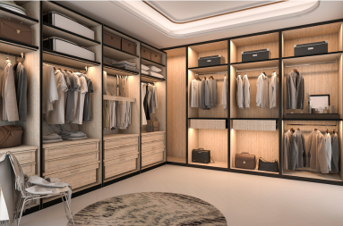บิ้วอิน เหมาะ เพราะซ่อนระบบไฟ/สายและทำขนาดพอดีกับของใช้ เช่น ตู้รองเท้าทั้งผนัง ตู้เสื้อผ้าเต็มสูง