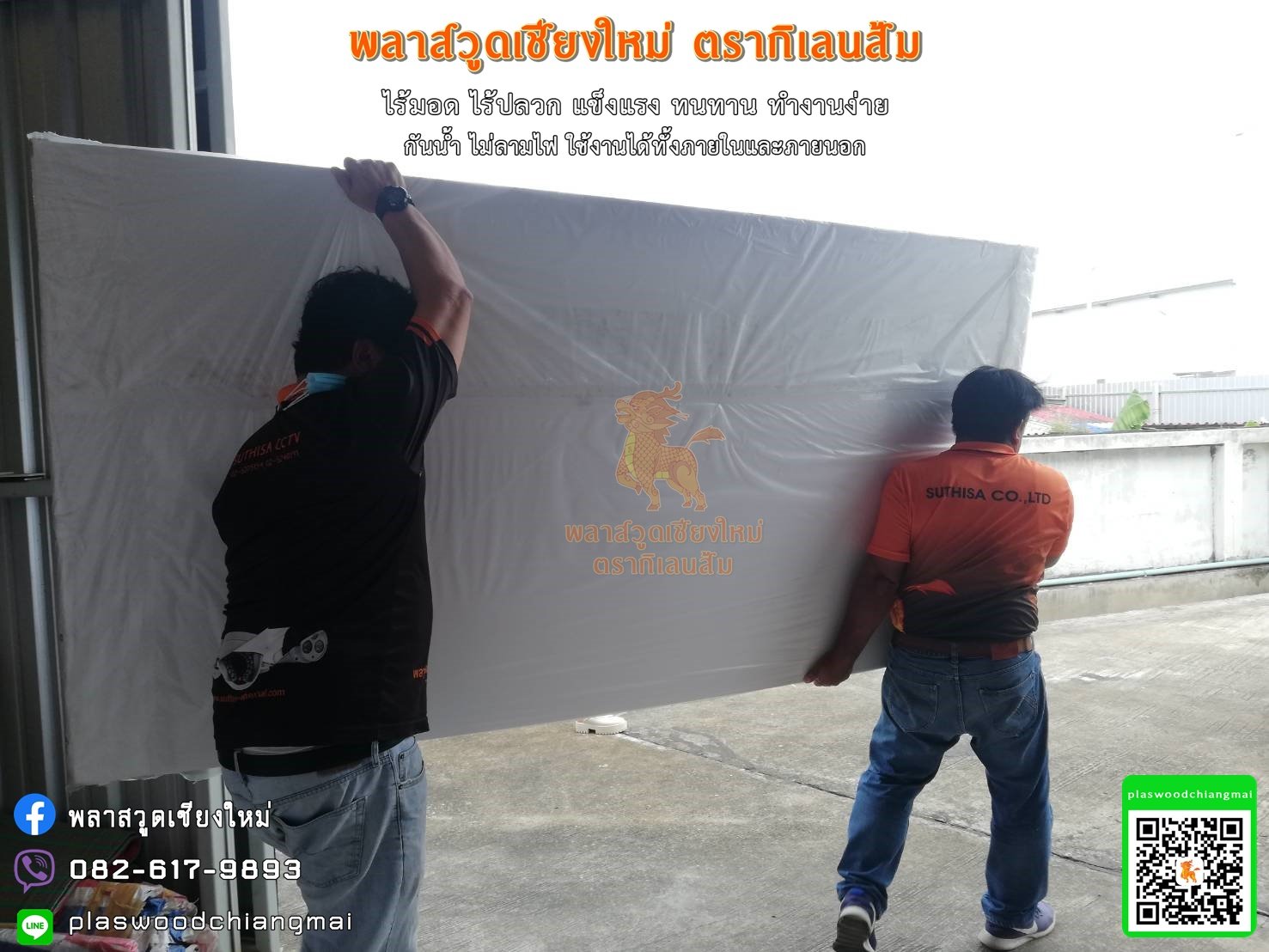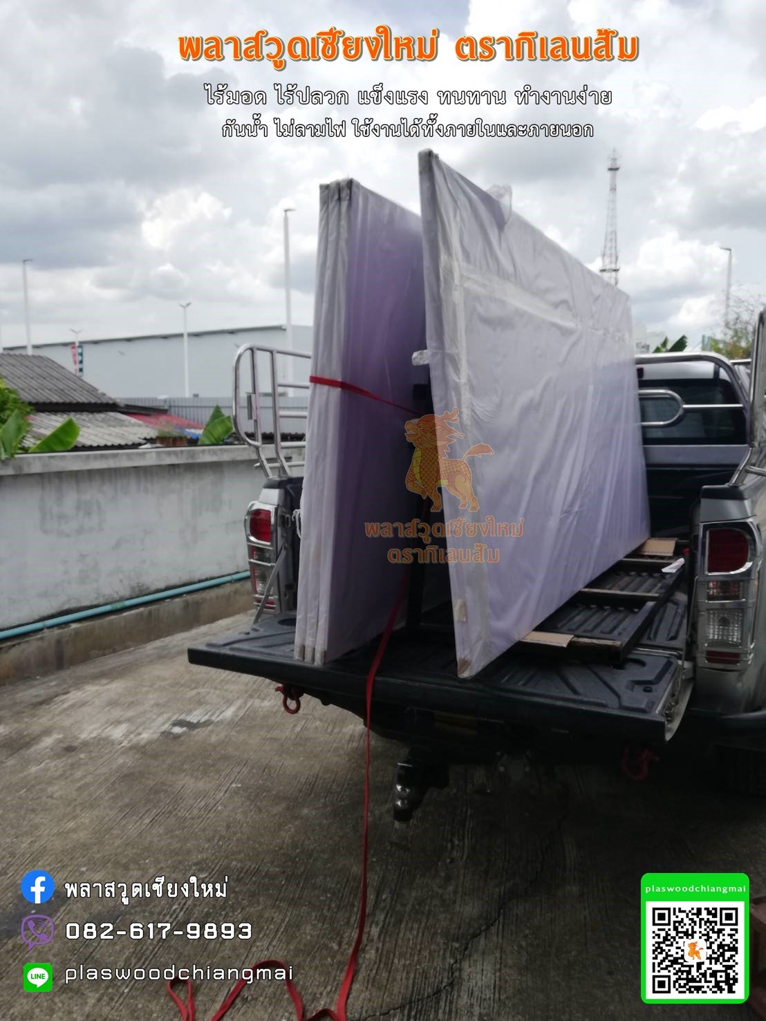 พลาสวูดเชียงใหม่ พลาสวูดภาคเหนือ พลาสวูดตรากิเลนส้มไม่กลัวน้ำ ทนแดด ทนฝน โดนน้ำได้ 100% แผ่นไม่มีการบวม อมน้ำ หรือยุ่ยออกมา (424 อ่าน)
