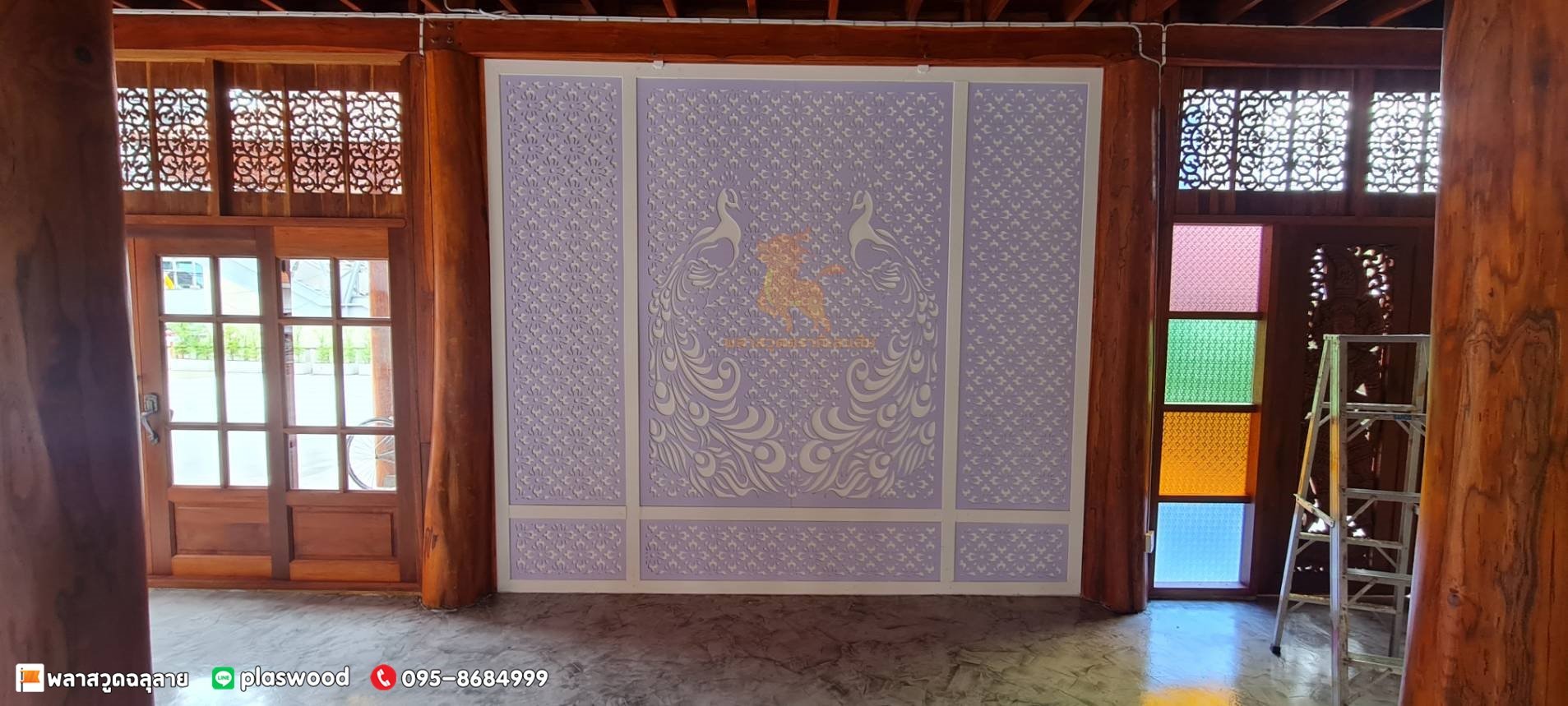 พลาสวูดฉลุลายนกยูง นำไปติดตั้งทำเป็นฉากใต้บันได สวยมากๆค่ะ