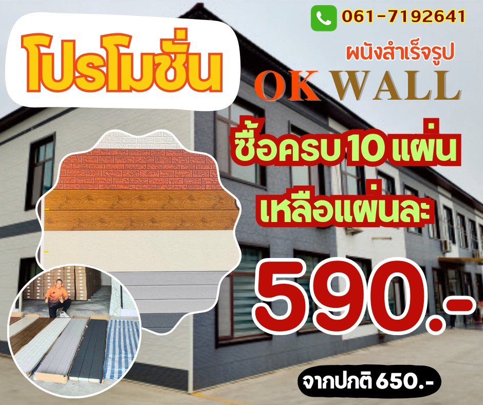 โปรโมชั่น ผนังสำเร็จรูป OK WALL (PU WALL) ซื้อ 10 แผ่น เหลือแผ่นละ 590 บาท โปรนี้ถึง 31 ม.ค. 2567 เท่านั้นนะคะ (1566 อ่าน)