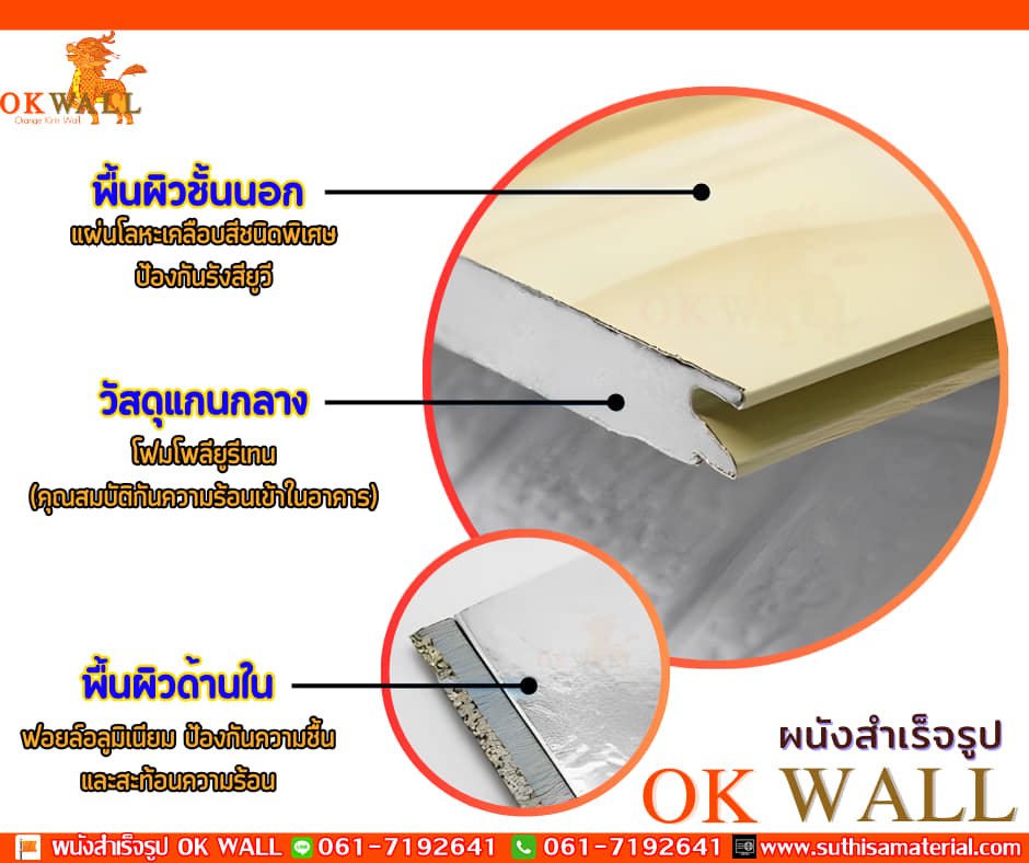 ผนังสำเร็จรูป OK WALL ผนังประหยัดพลังงาน ผนังกันความร้อน วัสดุแกนกลางทำจากโฟมโพรียูรีเทน (250 อ่าน)