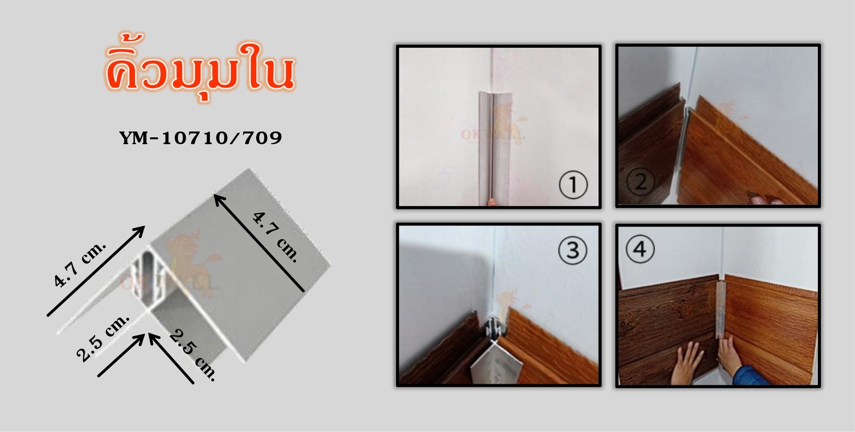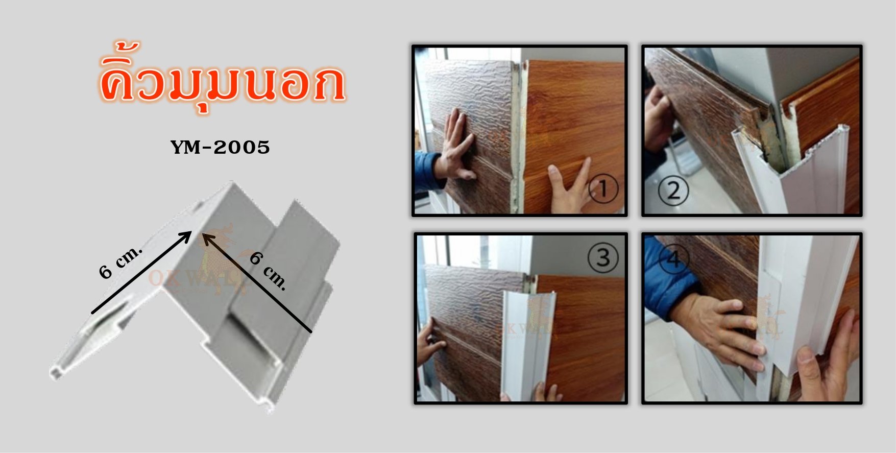 ผนัง PU WALL แบรนด์ OK WALL ของบริษัท ศุฐิศา จำกัด นอกจากจะมีลวดลายที่สวยงานติดตั้งง่ายแล้ว เรายังมีอุปกรณ์เสริมที่เก็บงานติดตั้งผนังให้เรียบร้อยดังนี้