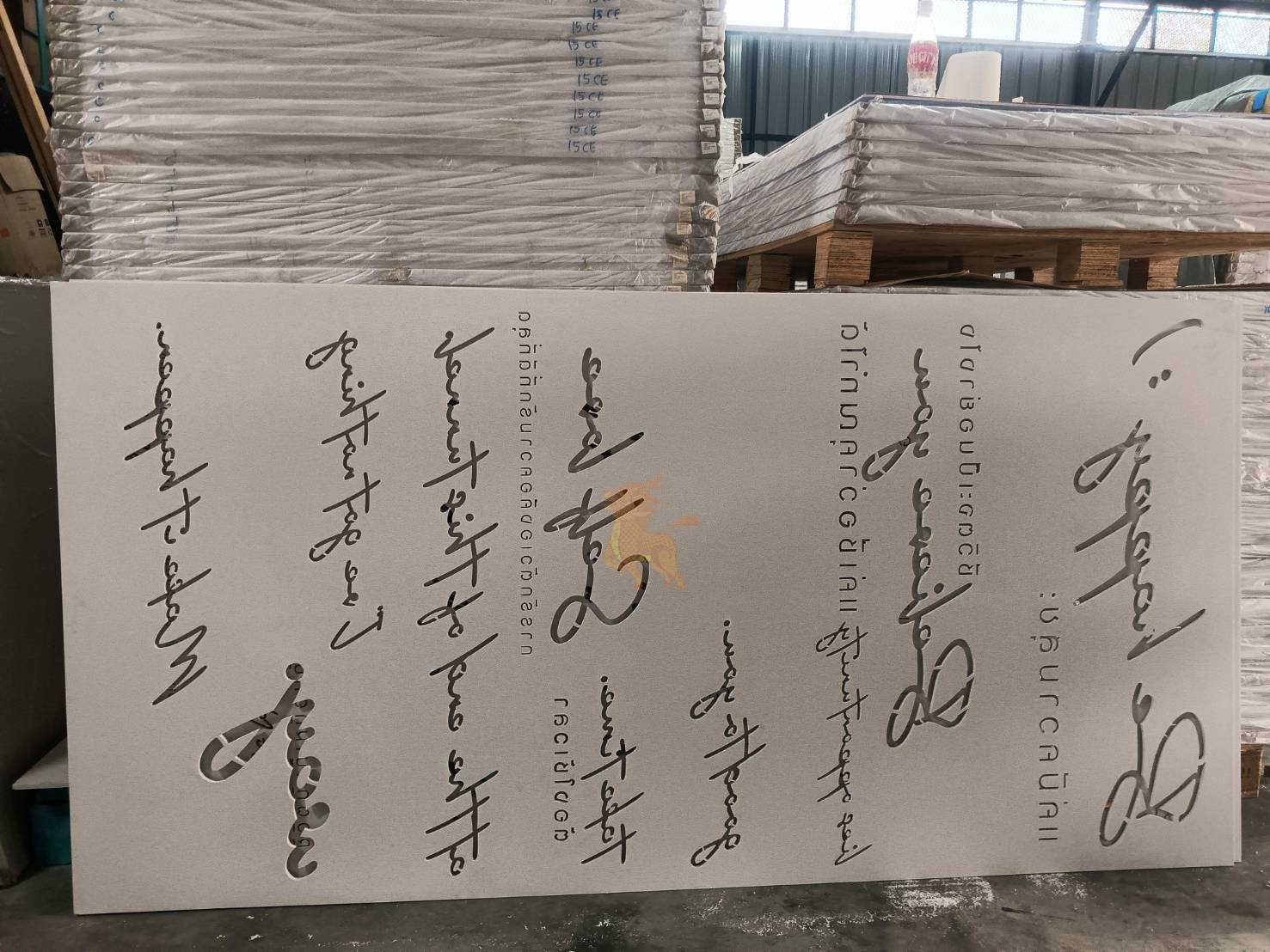 คุณลูกค้าต้องการใช้แผ่นพลาสวูดทำประตูบานเลื่อน แต่ไม่อยากได้แบบทึบๆ เลยเลือกใช้พลาสวูดฉลุลาย โดยออกแบบเป็นตัวหนังสือมาให้ฉลุเองเลยค่ะ![]()