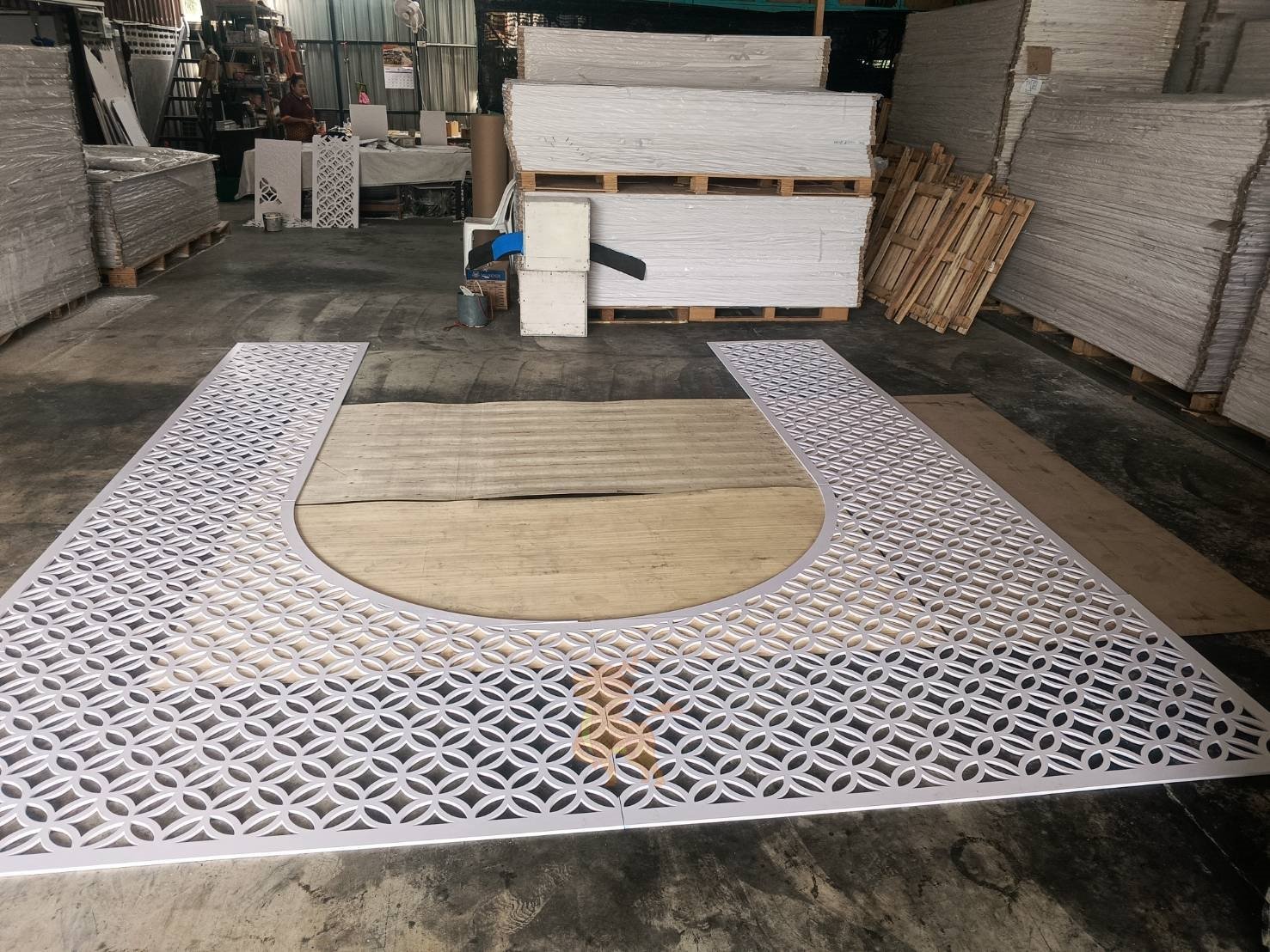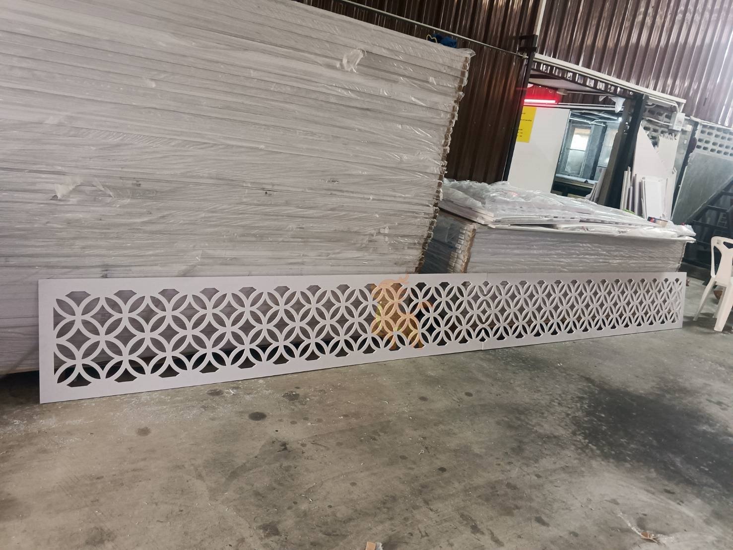 พลาสวูดฉลุลาย นำไปติดตกแต่งซุ้มหน้าประตู ทำให้ผนังที่เรียบๆ มีลวดลายที่น่ามองและมีความสวยงามมากยิ่งขึ้นค่ะ