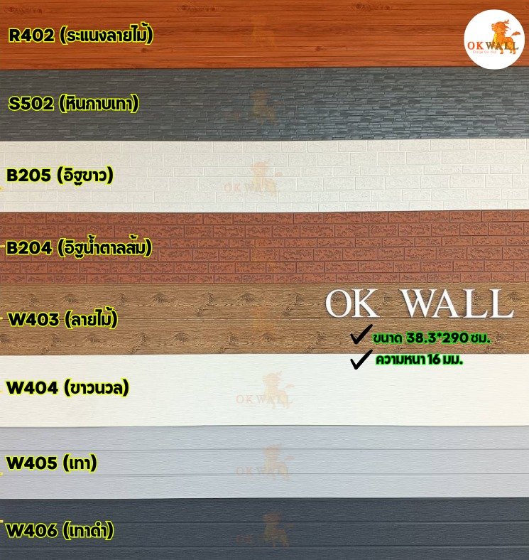 OK WALL ผนังสำเร็จรูป ติดตั้งแล้วบ้านเย็น ป้องกันความร้อนจากภายนอกได้ด้วยค่ะ ติดตั้งง่ายมาก ประหยัดเวลาสุดๆ มีหลายลายให้ได้เลือก และที่สำคัญ !! น้ำหนักเบา ไม่บวมน้ำ ไม่ลามไฟ และติดตั้งได้ทั้งภายนอกและภายในเลยค่ะ