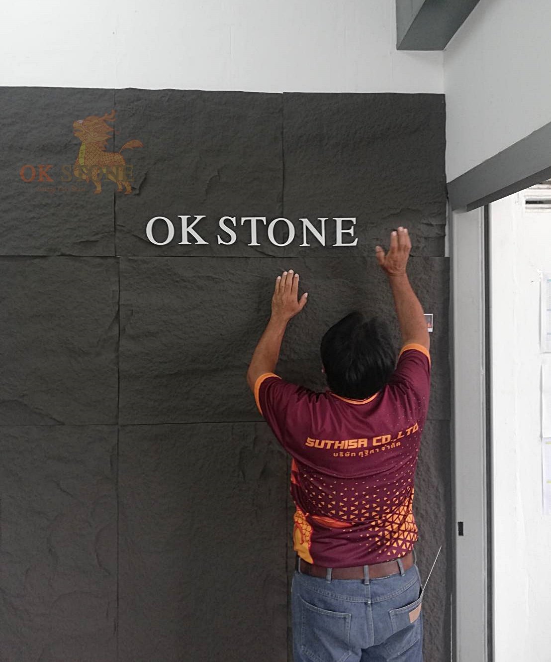 หินเทียม OK STONE ใช้แผ่นอาคารอาคาร คาเฟ่บ้าน แทนการใช้หินธรรมชาติไม่พูดถึงง่ายมองข้ามไม่ลามไฟและที่สำคัญพื้นผิดเหมือนหินธรรมชาติราคาถูกสุดๆ น้ำหนักเบา!! โดนน้ำได้ 100% รองรับทั้งภายนอกและภายในเลยค่ะ