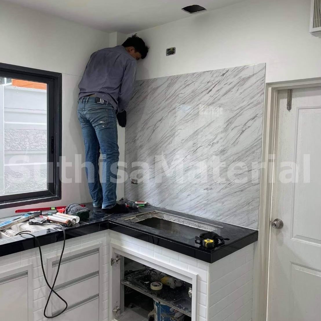 ว้าว !! สวยงามอลังการงานสร้างไหมครับ #พีวีซีลายหิน #SU910 #พีวีซีลายหินลายขาวชมพูหินอ่อน ตกแต่งผนังราคาไม่แพง ด้วยวัสดุคุณภาพ แผ่นพีวีซีลายหิน ความหนา 3 mm. ลายขาวชมพูหินอ่อน