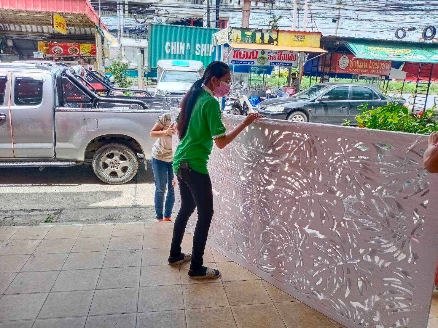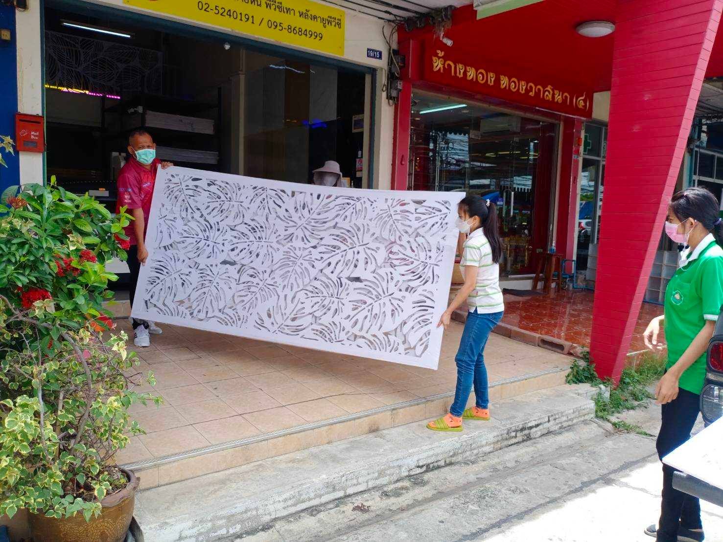 งานฉลุลายพลาสวูด คุณลูกค้ามาใช้บริการอย่างต่อเนื่อง ไม่ว่าจะเป็น ฉากกั้นห้อง หรือตกแต่งผนังด้วยพลาสวูดฉลุลายสวยๆ ช่วงโควิด อยู่บ้าน Work From Home คิดจะแต่งบ้านด้วยพลาสวูดฉลุลาย คิดถึง บจ.ศุฐิศา นะครับ