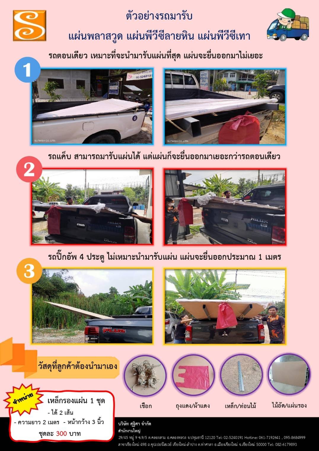 3. รถปิ๊กอัพ 4 ประตู ไม่เหมาะนำมารับแผ่น แผ่นจะยื่นออกมากรถประมาณ 1 เมตรค่ะ