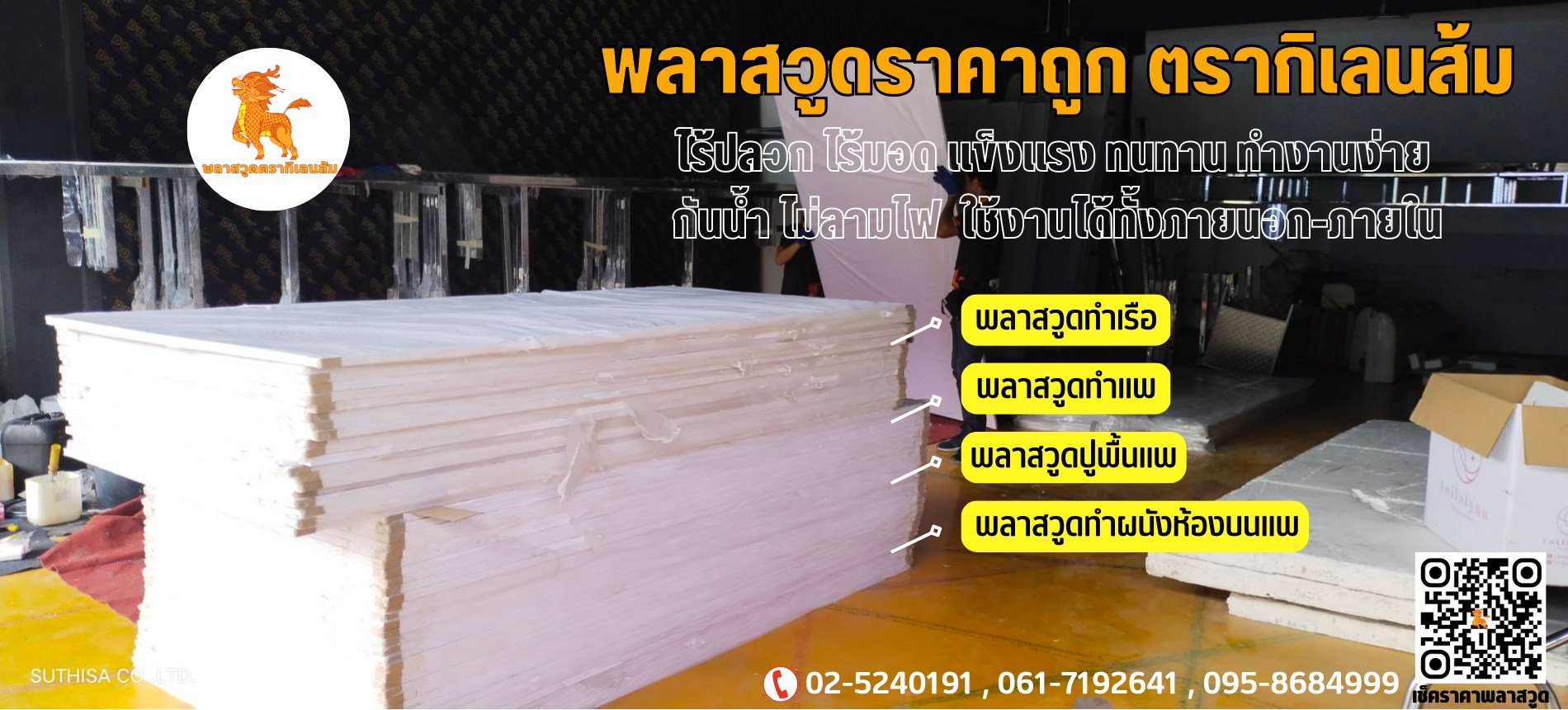 พลาสวูดราคาถูก ตรากิเลนส้ม ไร้ปลวก ไร้มอด แข็งแรง ทนทาน ทำงานง่าย ไม่บวมน้ำ ไม่ลามไฟ ใช้งานได้ทั้งภายนอก-ภายใน