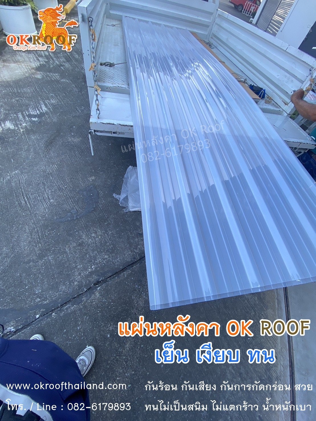 เห็นใสๆ บางๆ แบบนี้ แต่อายุการใช้งานยาวนานมากกว่า 20 ปีขึ้นไปค่ะ และที่สำคัญ ลดความร้อน และเสียงฝนได้เป็นอย่างมากเลยค่ะ