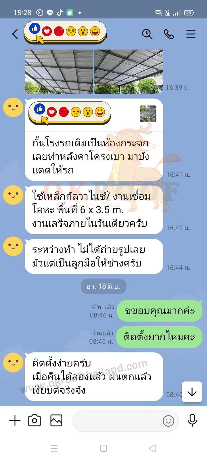 ขอขอบคุณคุณลูกค้าที่อุดหนุน และรีวิวให้กับ OK Roof แผ่นหลังคาสุดล้ำ กันร้อน กันเสียง กันการกัดกร่อน มา ณ.ที่นี้ด้วยค่ะ