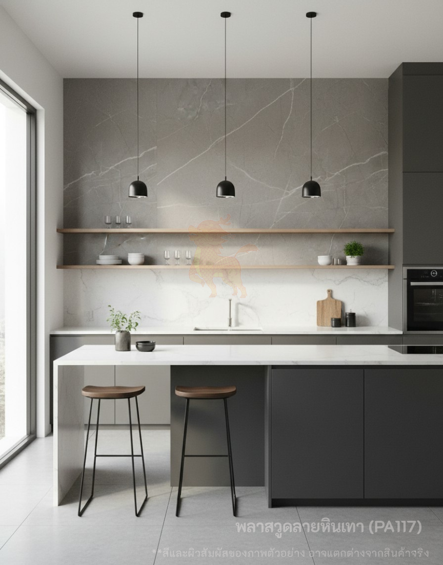 รหัสสินค้า pa117 / พลาสวูดลายหิน / พลาสวูดลายหินเทา / ขนาด 1220*2800 mm. / ความหนา 8 mm.
